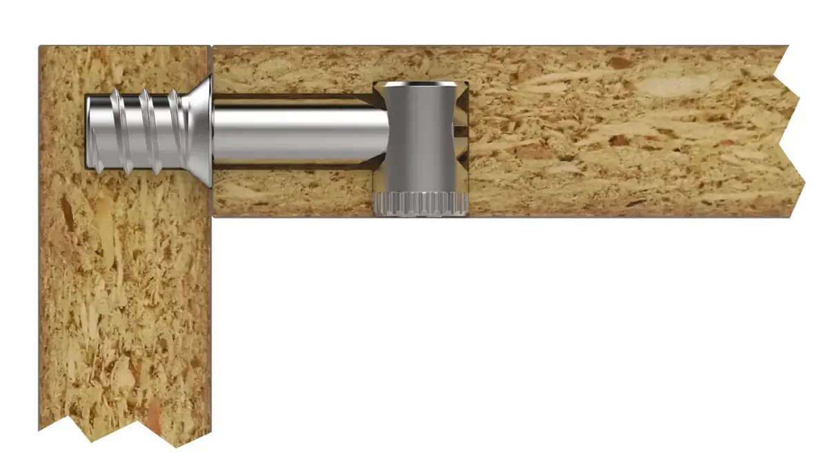 Elemento di collegamento per mobili in legno, resistente e facile da installare.