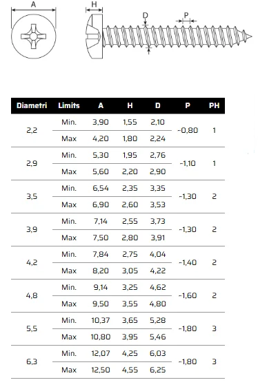 Disponibili in vari diametri (da 4,2 mm a 5,5 mm) e in diverse lunghezze, queste viti si prestano a molteplici impieghi: fissaggi su lamiere, pannelli plastici, componenti elettronici, supporti meccanici e piccoli assemblaggi. La testa cilindrica garantisce un appoggio ampio e sicuro, ideale per serraggi che richiedono stabilità e una distribuzione uniforme della forza. L’impronta a croce PH consente un avvitamento semplice, preciso e con ridotto rischio di slittamento dell’inserto.