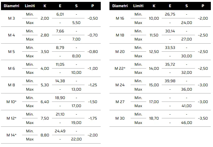 vite esagonale misure